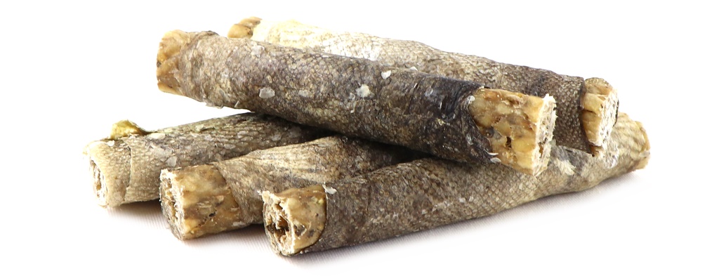 Diese gefüllten Kaurollen sind ein besonderer Kauspaß für Groß und Klein. Dorschhaut ist ein natürlicher und gesunder Hundesnack. Sie ist reich an Proteinen und Omega-3-Fettsäuren, fettarm (nur 1,9% Fettgehalt). Ideal für die tägliche Zahnpflege und zur Stärkung der Kaumuskulatur.