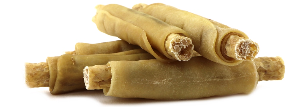 Die gefüllten Kaurollen bestehen aus 96% Rinderhaut, 3% Lamm, 1% Ochsenziemer.