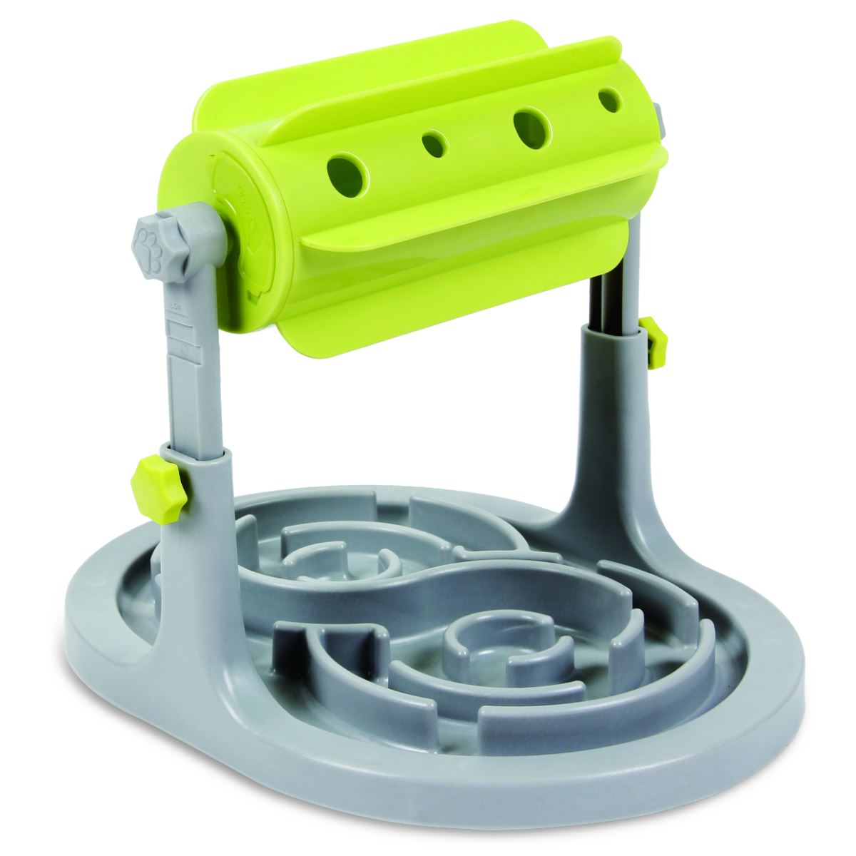 Mit dem SnackSpender ist spannender Spielspaß garantiert! Fülle zunächst den Futterspender mit kleinen Leckerlies welche durch die Öffnungen in der Trommel passen und schon kann es losgehen. Sobald dein Hund die Snacks gewittert hat, wird er versuchen einen Weg zu finden, an die Leckerlies zu gelangen. Dies gelingt ihm nur durch langsames Drehen des Futterspenders, sodass die Leckereien in den Anti-Schling Napf zu Boden fallen.